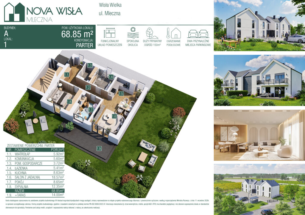 525 000 PLN | 68,85 m2 | 3 pokoje | parter
