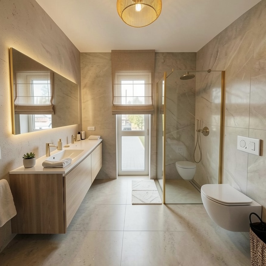 • Ogrzewanie podłogowe w każdym pomieszczeniu + sterowanie strefowe